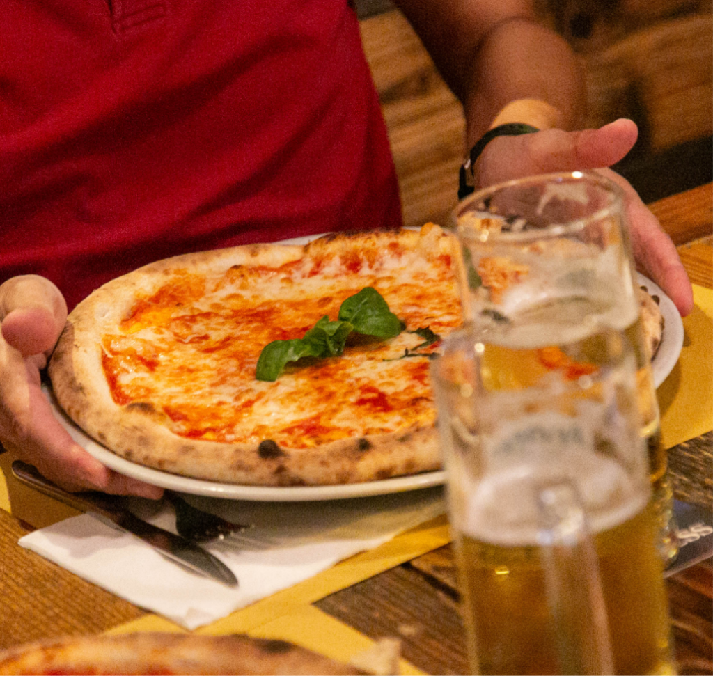 Dalla fragranza irresistibile delle nostre pizze cotte nel forno a legna alla succulenza delle carni alla griglia, ogni piatto è un’esplosione di gusto, preparato con ingredienti freschi e selezionati.