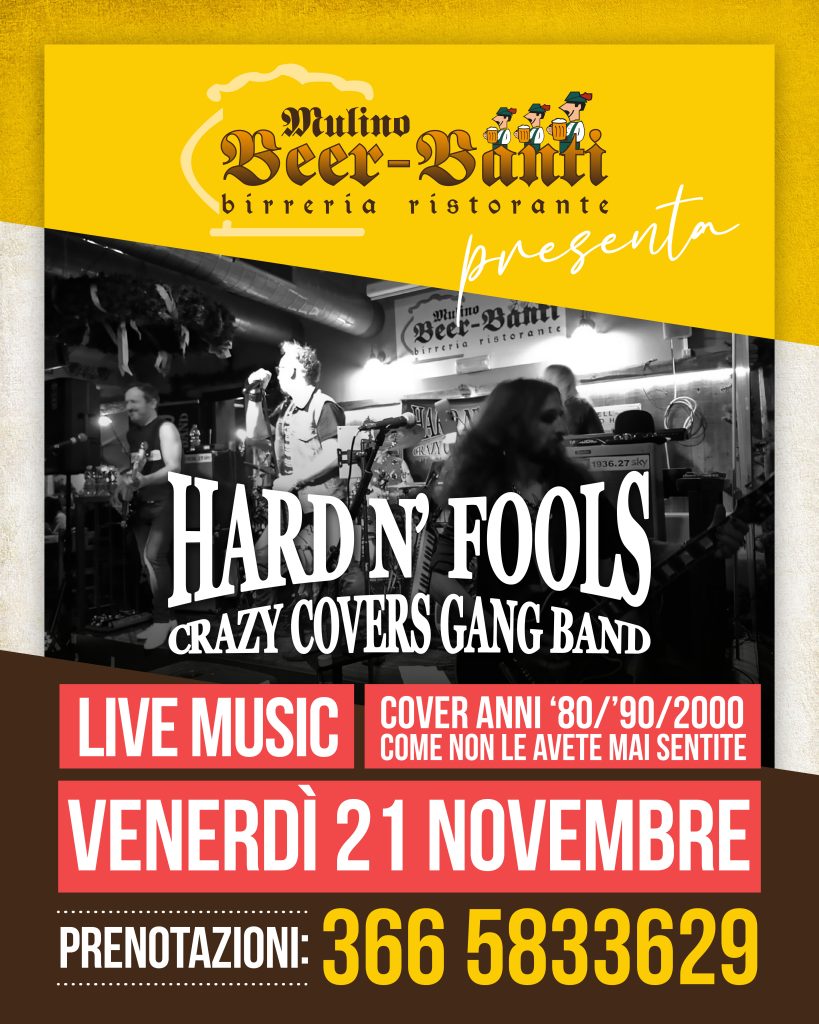 Venerdì 21 novembre preparati a scatenarti con gli Hard N’ Fools, pronti a portare sul palco del Mulino Beer-Banti tutta la potenza del rock più autentico.