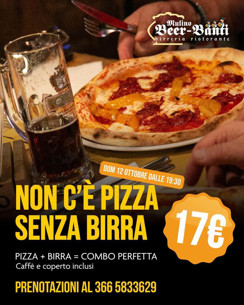 Al Beer-Banti la domenica ha tutto un altro sapore, domenica 12 ottobre ti aspetta una promozione speciale dedicata a una delle coppie più amate di sempre: pizza e birra.