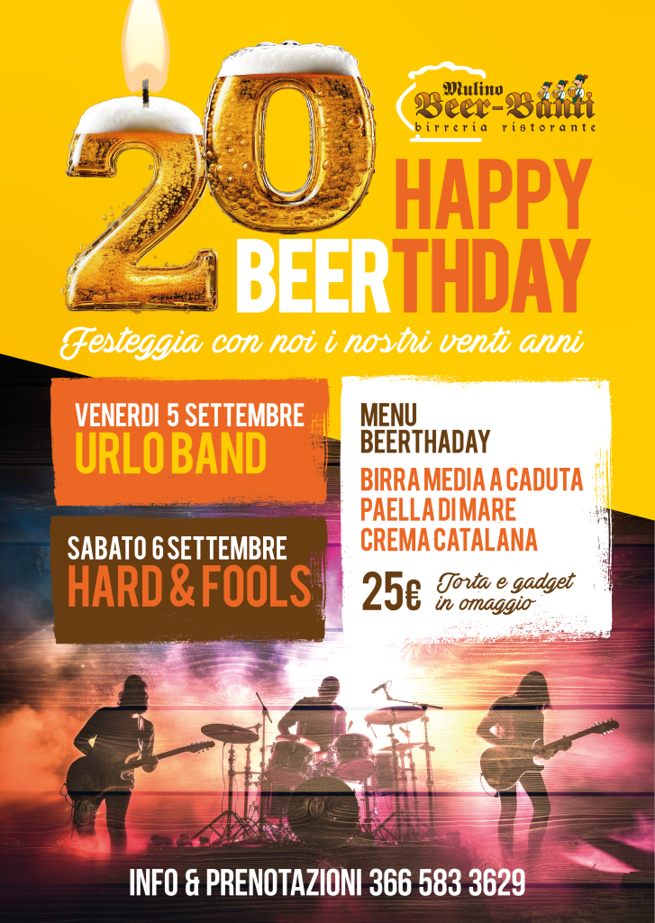 Il Mulino Beer-Banti compie 20 anni e vi invitiamo a celebrare questo traguardo con due serate indimenticabili di musica, buon cibo e birra!